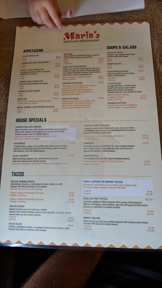Welcome to Maria's Mexican Restaurant, a family-owned gem nestled in Denham Springs, LA. Specializing in traditional Mexican cuisine, we offer a vibrant and relaxed atmosphere perfect for lunch and dinner. While we don’t serve alcohol, our menu features a variety of vegetarian and vegan options, as well as delicious shareable plates. Enjoy fast service and the convenience of contactless delivery or takeout through DoorDash. With accessible seating and facilities, Maria's welcomes everyone. Come savor authentic flavors and experience our welcoming environment, whether dining solo or with family. Join us for a delightful culinary journey today!